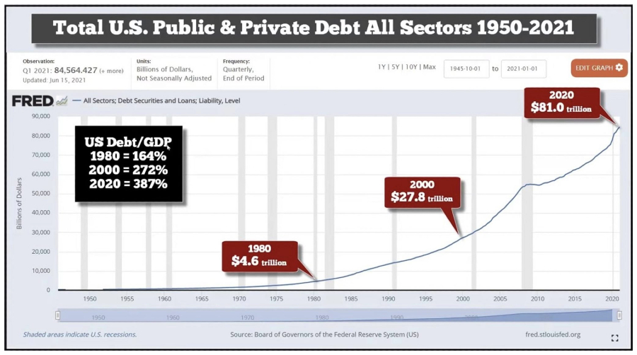 Now it’s Joe Biden at the helm, and when he took over, another nearly $6 trillion was added to the national debt. But that was January; gargantuan ‘COVID’ relief measures coupled with other massive spending has driven the debt to a new record high: $28.5 trillion as of this writing; a figure that will have gone up substantially by the time this story is published in quick order.