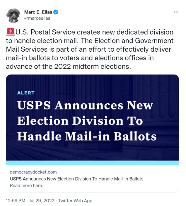 The rationale for this new division is that the growing use of mail-in ballots requires extra attention to ensure the greater volume of mailed ballots can be handled by an increasingly overburdened USPS.