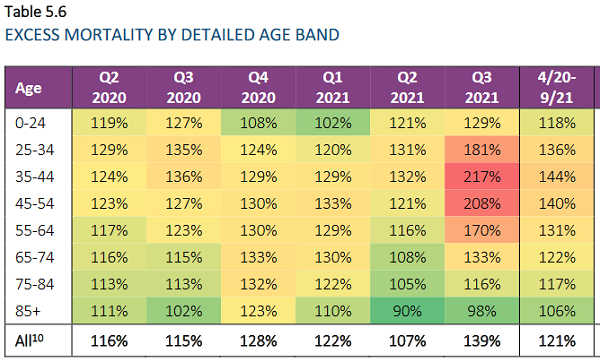 Based on available excess mortality figures already available today (see the 2021 excess mortality numbers from SOA Research Institute, shown below), we know that more than twice the number of “normal” deaths are being seen in some groups following covid vaccinations.