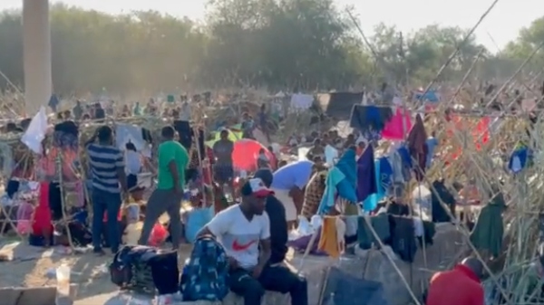 In one border crossing on a patch of American soil in El Paso between the Rio Grande and the border wall, Texas Tribune reporter Uriel J. Garcia wrote that hundreds of migrants were standing in ragged lines waiting near a gate in the wall for their turn to pass. (Related: Drone footage shows makeshift camps built along Rio Grande by migrants waiting for Title 42 to end.)